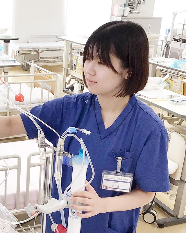 - 現在従事している透析治療で、患者さんとのコミュニケーションを通して患者さんの意図を汲み取ってより良い治療に繋げられた時です。また、毎日のルーティン業務を行なう中で、穿刺やシャントエコーなどで自身の技術の成長が確認できることもやりがいとなっています。